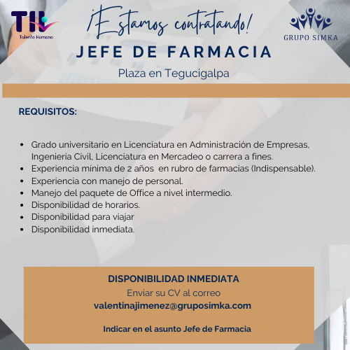 -Experiencia mínima de 2 años en rubro de farmacias (Indispensable).